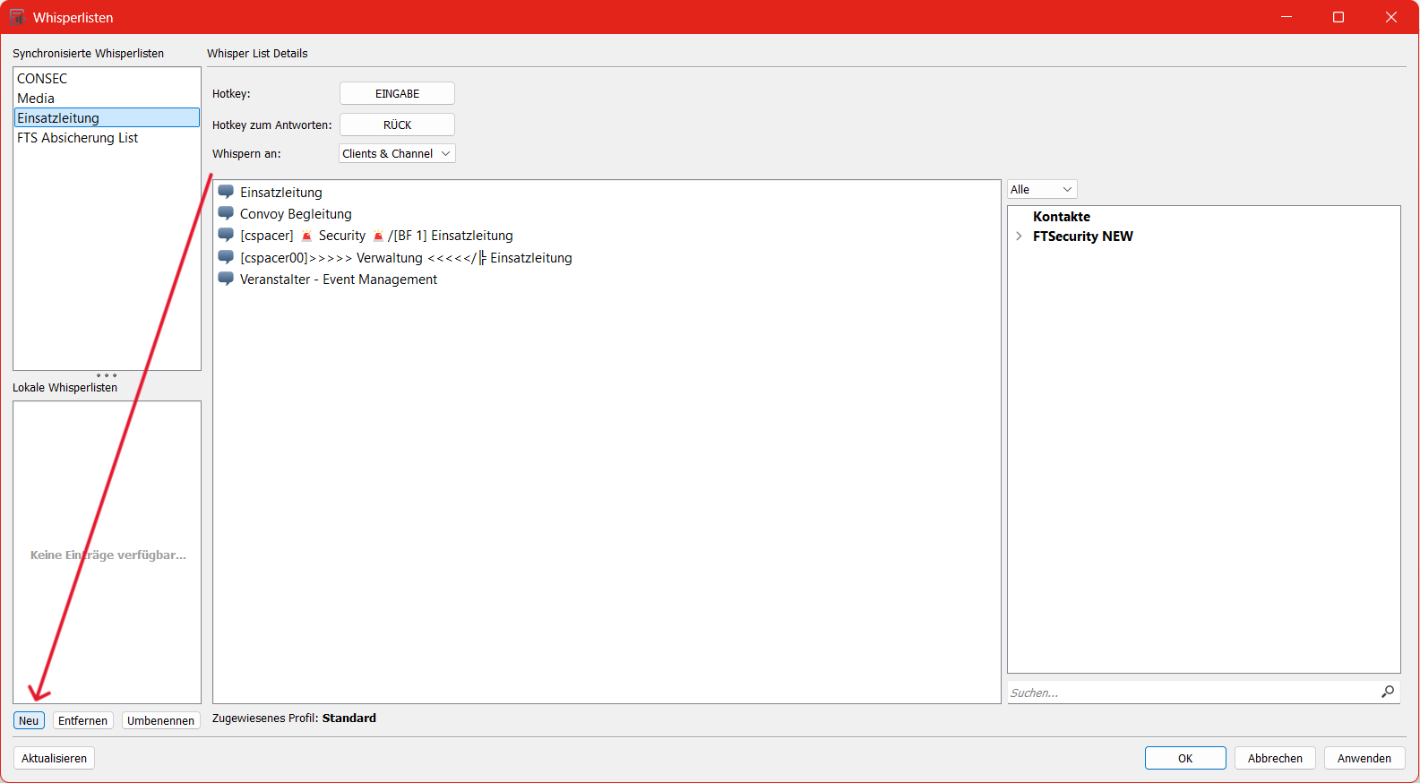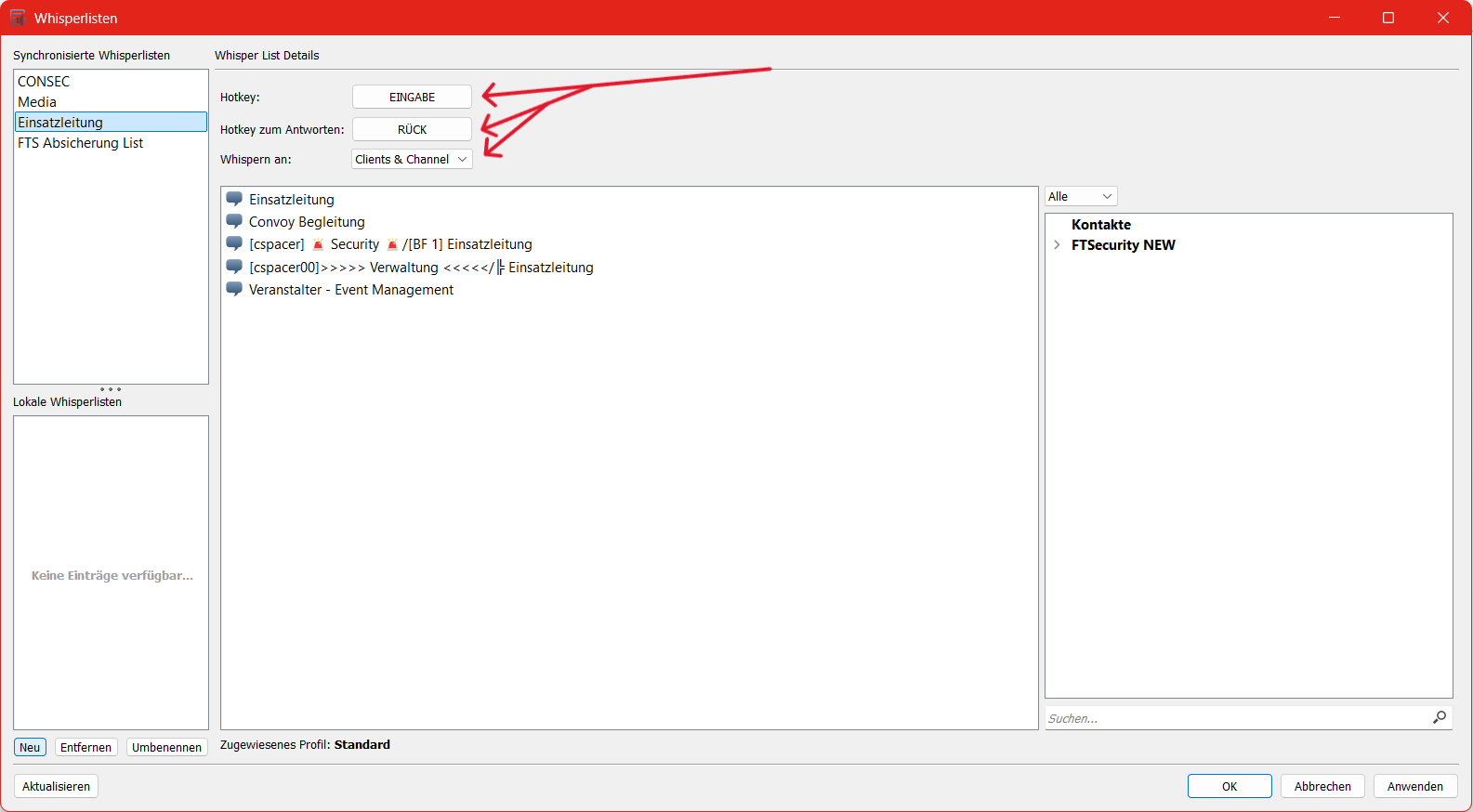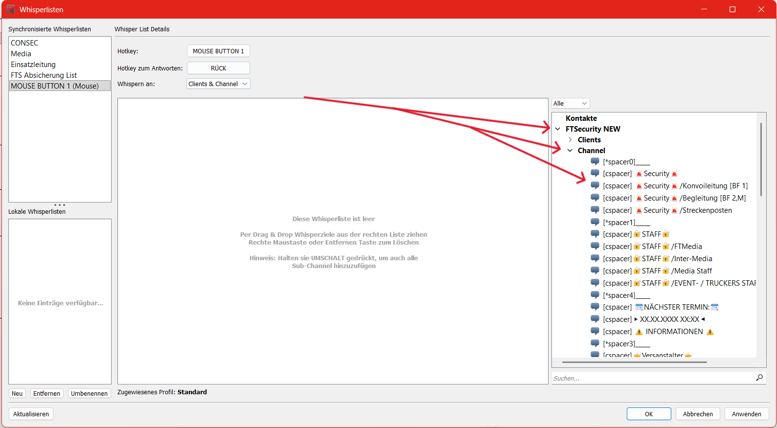 - solltest du eine neue Whisperliste erstellt habe so musst jetzt noch 2 – 3 Einstellungen Treffen.